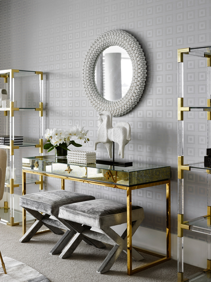Mirvac were after something sophisticated and glamorous to reflect the type of buyer they knew would be attracted to the apartments and the fabulous lifestyle on the Brisbane River in the heart of a great food and wine precinct. We engaged Greg Natale, the Belle Coco Republic Interior Designer of the Year 2014 and worked with the team at Australian Gourmet Traveller to bring in the food and wine aspect. Greg really wanted to create a scheme with the Jonathan Adler pieces that had just arrived in Australia and Gourmet Traveller worked with renowned Brisbane chef Ben Williamson of Gerard’s Bistro so together we produced the perfect combination of design, food and wine.