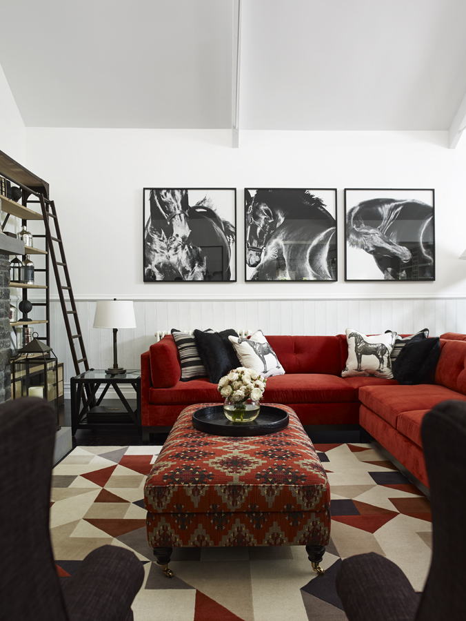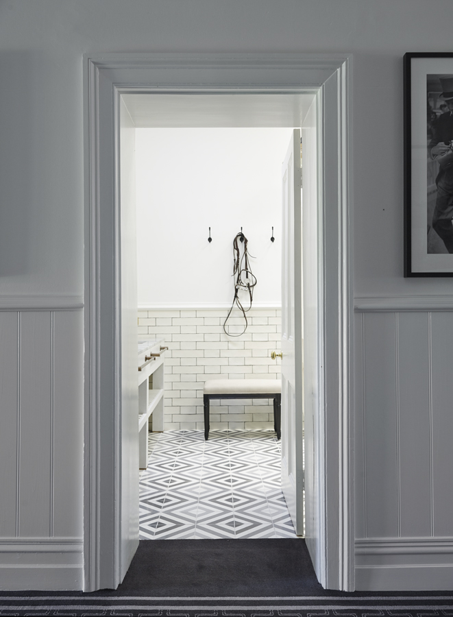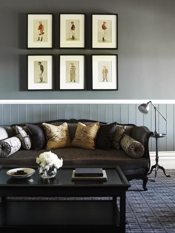 With the house situated on a renowned horse stud, equine elements prevail in quirky touches such as jockey paintings, horse statues and accessories, surrounded by a sophisticated blend of rustic elements and glamorous pieces.