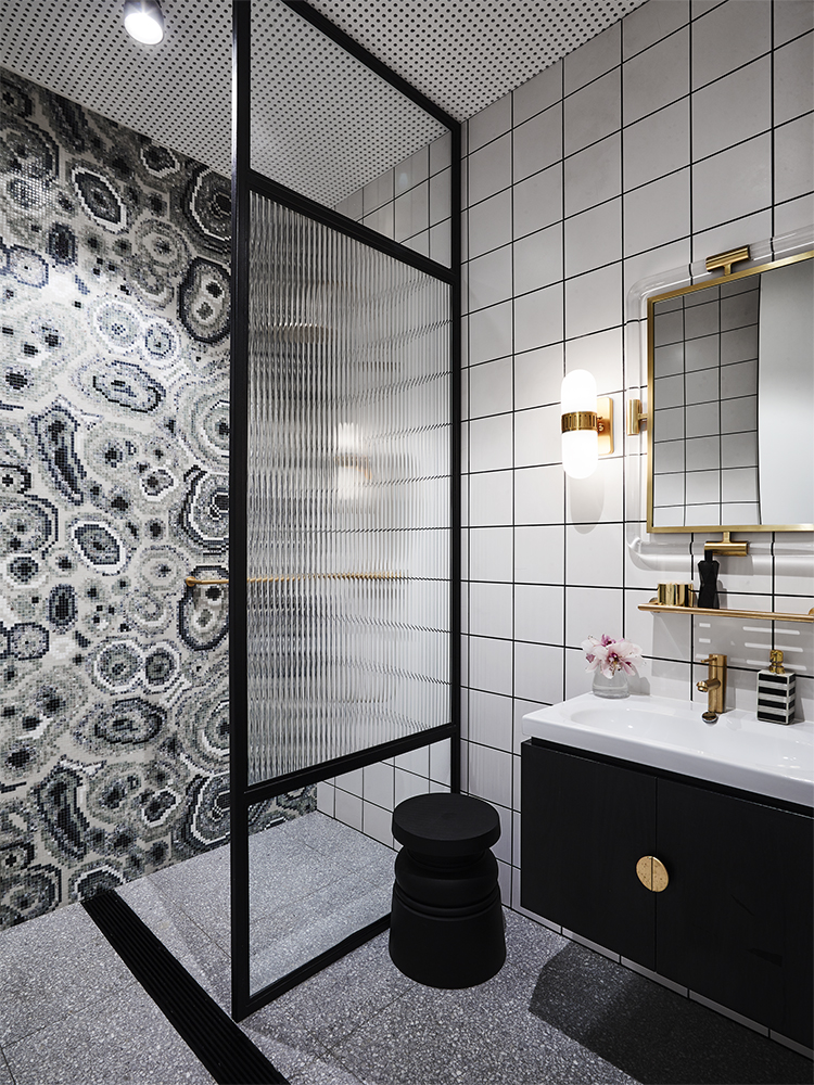 In Paul Rudolph’s design, there is a sense of blurred lines between social and private, and Greg Natale Design’s headquarters references this. The place has a residential ambience, with its inviting sofas, bookshelves and intricate, livable layers, but it also functions and feels like a studio, with its brickwork, exposed beams, polished plaster on walls and perforated plasterboard on ceilings. It’s a sophisticated workspace that showcases the brand’s aesthetics at every level.
